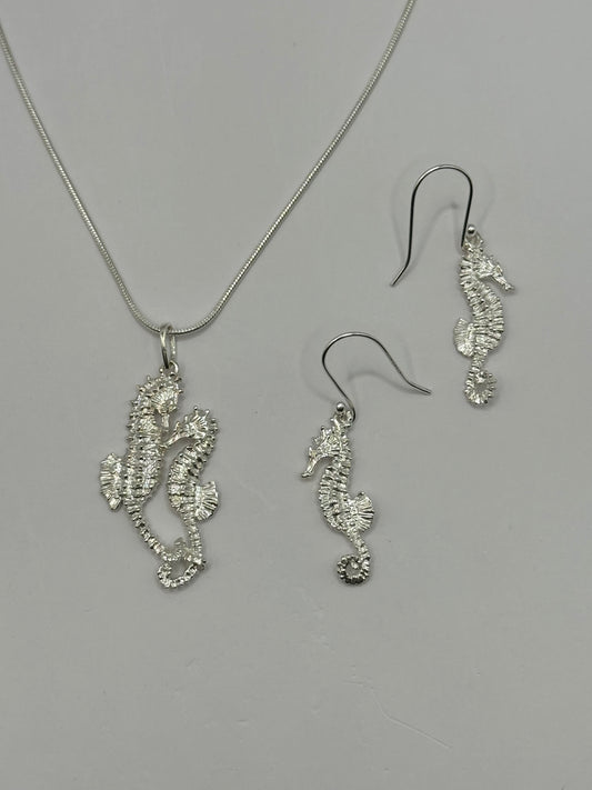 Sea Horse Necklace and Earrings Set - Handcrafted in 925 Sterling Silver for Nautical Jewelry for Women Marine Life Lovers, Handmade in USA