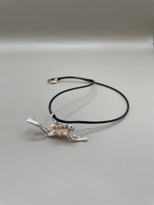 Scuba Diver Necklace, Handcrafted 3D Design Pendant in 925 Sterling Silver. Perfect for Scuba Diving Lovers