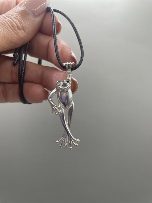 Smiling Tree Frog necklace, Handcrafted 3D Design in 925 Sterling Silver for Frog Lovers, Made in USA
