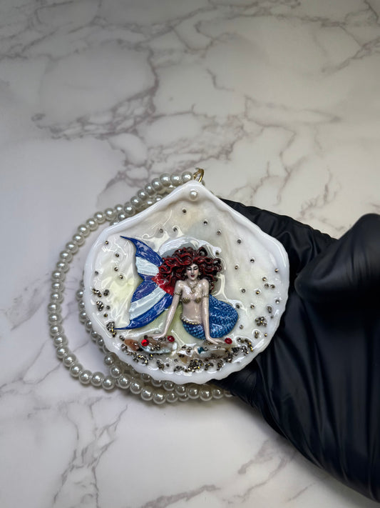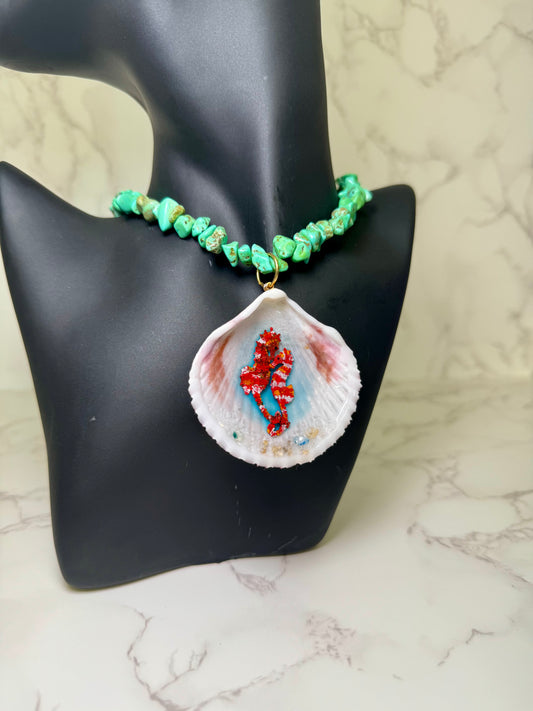 Coqueta Ocean Blue Tail Mermaid Sea Shell Necklace – Mermaid in Shell with UV Resin