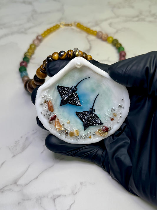 Manta Ray single necklace Resin‑Encased Shell Collection Shell Necklaces, Epoxy Resin Necklace with earrings