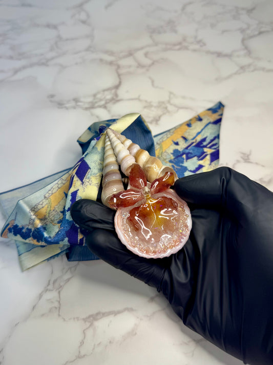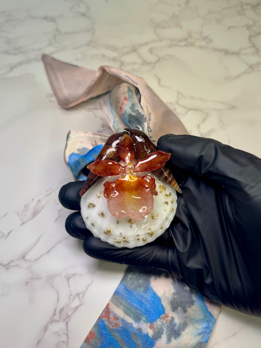 Mini Cattleya Orchid & Swirling Shells Necklace