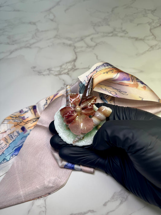 Mini Cattleya Orchid & Green Swirling Shells Necklace
