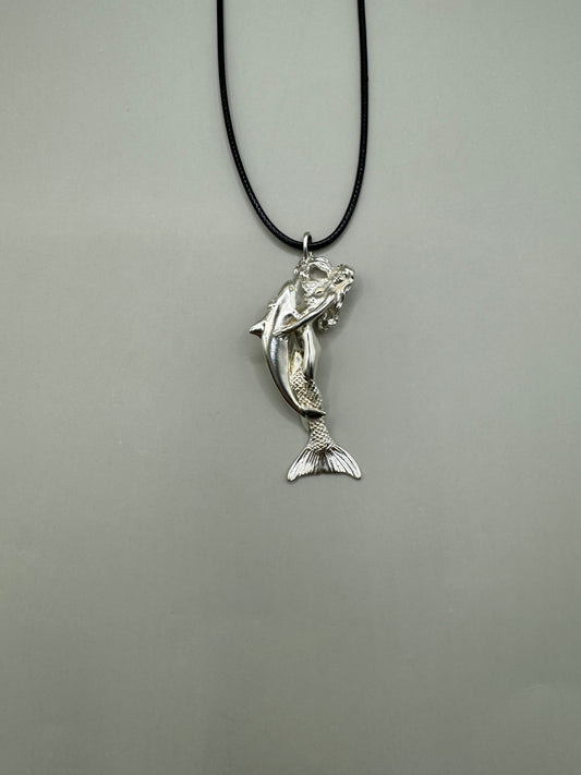 Mermaid & Dolphin Necklace – Detailed 3D Pendant Design Crafted in 925 Sterling Silver, Ocean-Inspired Jewelry for Sea Lovers, Made in USA