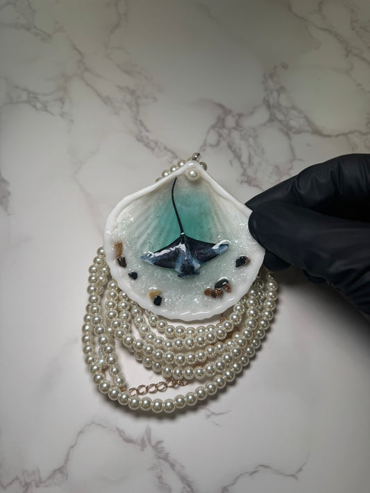 Manta Cielo Beautiful Handmade Manta Ray Necklace Encapsulated in Real Shell with UV Resin on Fine Crystal Beads