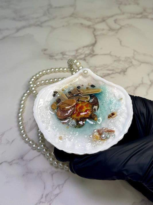 Turtle On Reefs Shell Necklace - Encapsulated in Real Shell with UV Resin