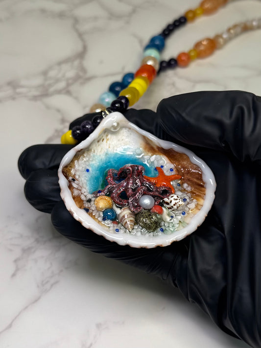 Octopus Shell Necklace - Encapsulated in Real Shell with UV Resin
