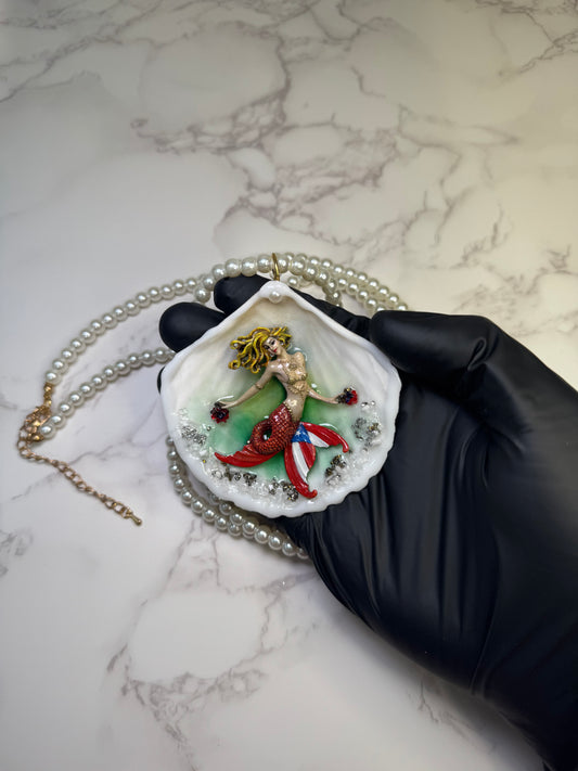 Puerto Rico Mermaid Sea Shell Necklace – Mermaid in Shell with UV Resin