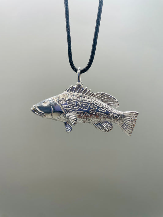 Grouper Fish Necklace, Handcrafted Pendant in 925 Sterling Silver, Perfect Gift for Men Fishing Lovers