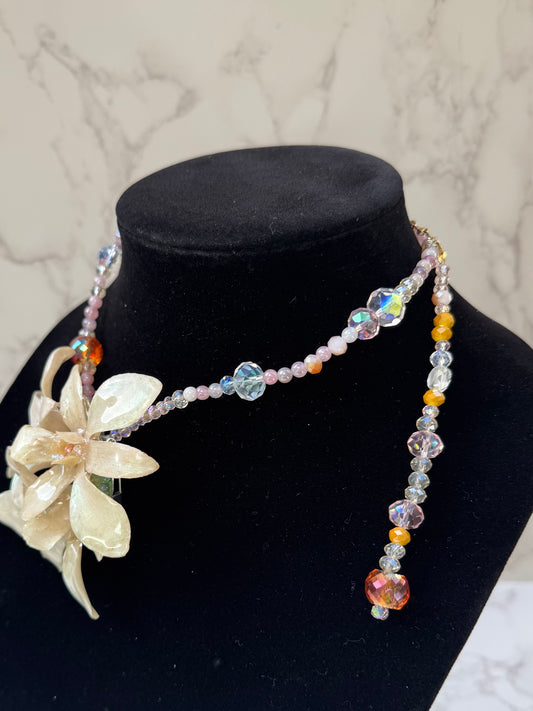 Blush Crystal Cattleya White & Light Purple Cattleya Orchid Necklace – Clear & Pink Crystal Beaded Jewelry