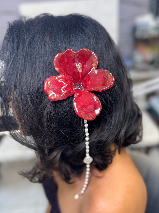 The Island Radiance – Red Hibiscus & Ocean Pearl Elegance