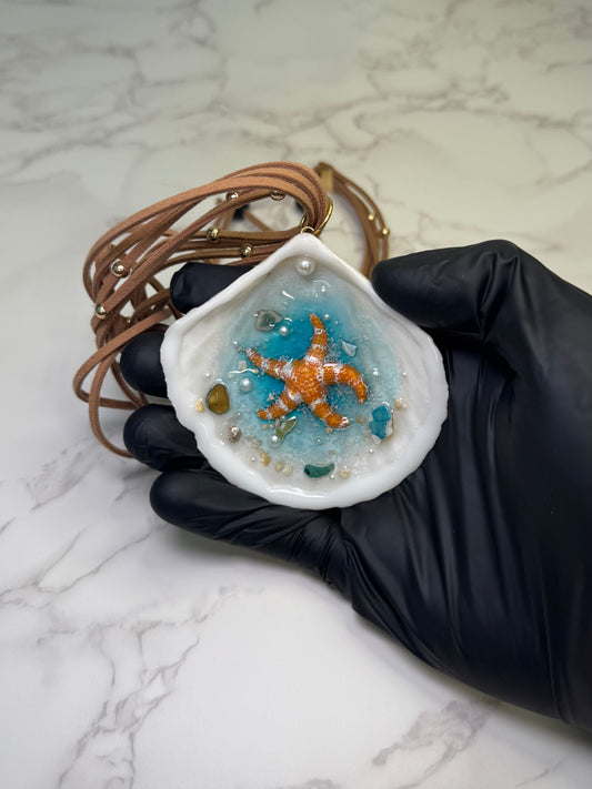 Petalo De Marea Natural Starfish Ocean Pendant – Encapsulated in UV Resin with Marine Elements.
