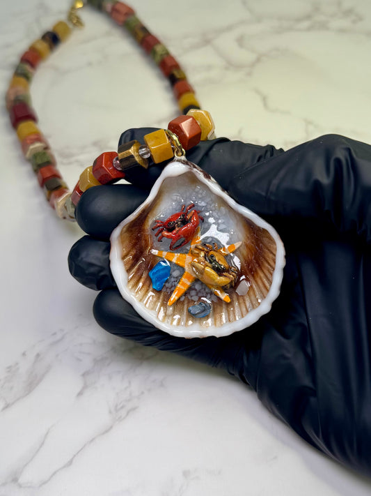 Red and yellow Crab Crab Shell Necklace - Encapsulated in Real Shell with UV Resin
