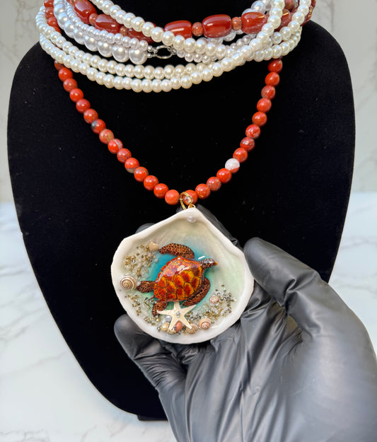 Turtle On Reefs Shell Necklace - Encapsulated in Real Shell with UV Resin