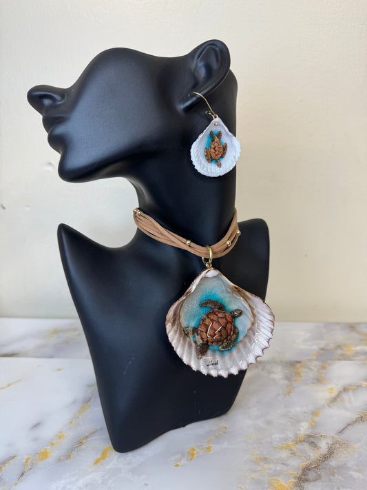 Sea Turtle Resin‑Encased Shell Collection Shell Necklaces Sea Necklaces Epoxy Resin Necklace with Earrings