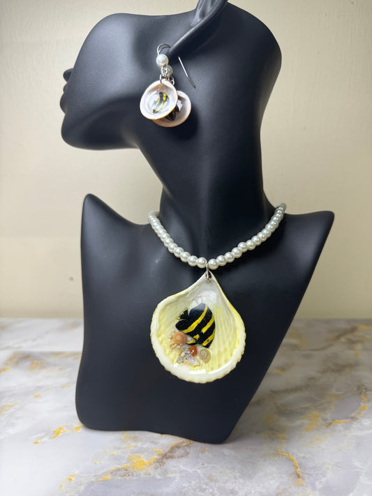 Manta Ray Resin‑Encased Shell Collection Shell Necklaces, Epoxy Resin Necklace with earrings