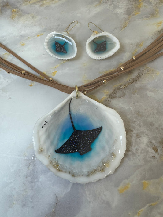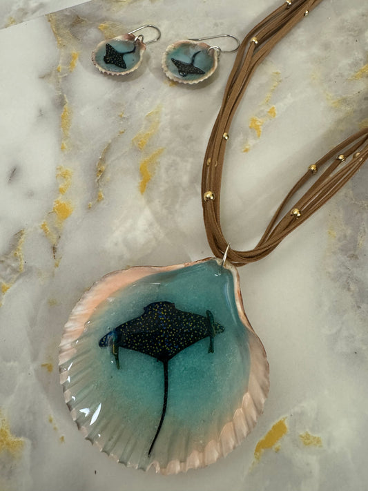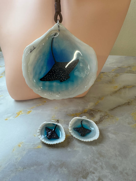 Manta Ray single necklace Resin‑Encased Shell Collection Shell Necklaces, Epoxy Resin Necklace with earrings