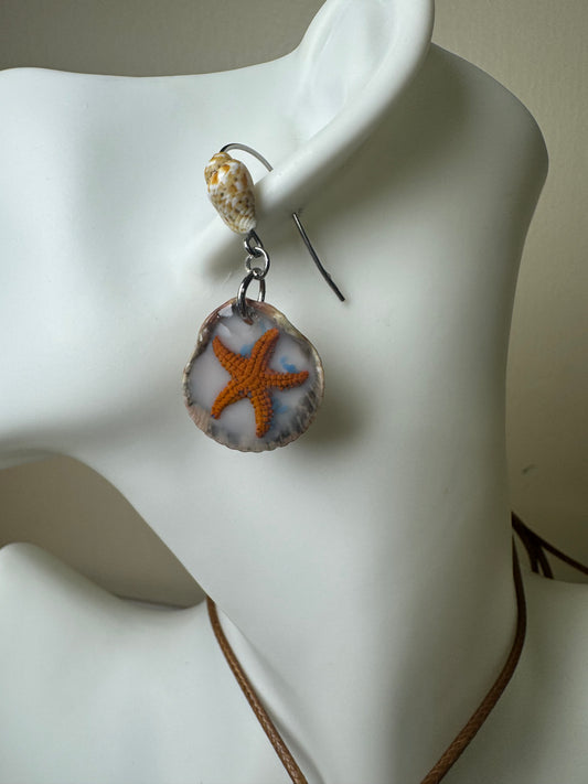 Starfish and Mini Manta Ray Resin‑Encased Shell Collection Shell Necklaces Sea Necklaces Epoxy Resin Necklace and Earrings Jewelry Manta Ray and Starfish set