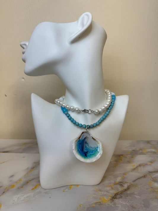 Gorgeous Dolphin Necklace Resin‑Encased Shell Collection Shell Necklaces, Epoxy Resin Necklace with earrings