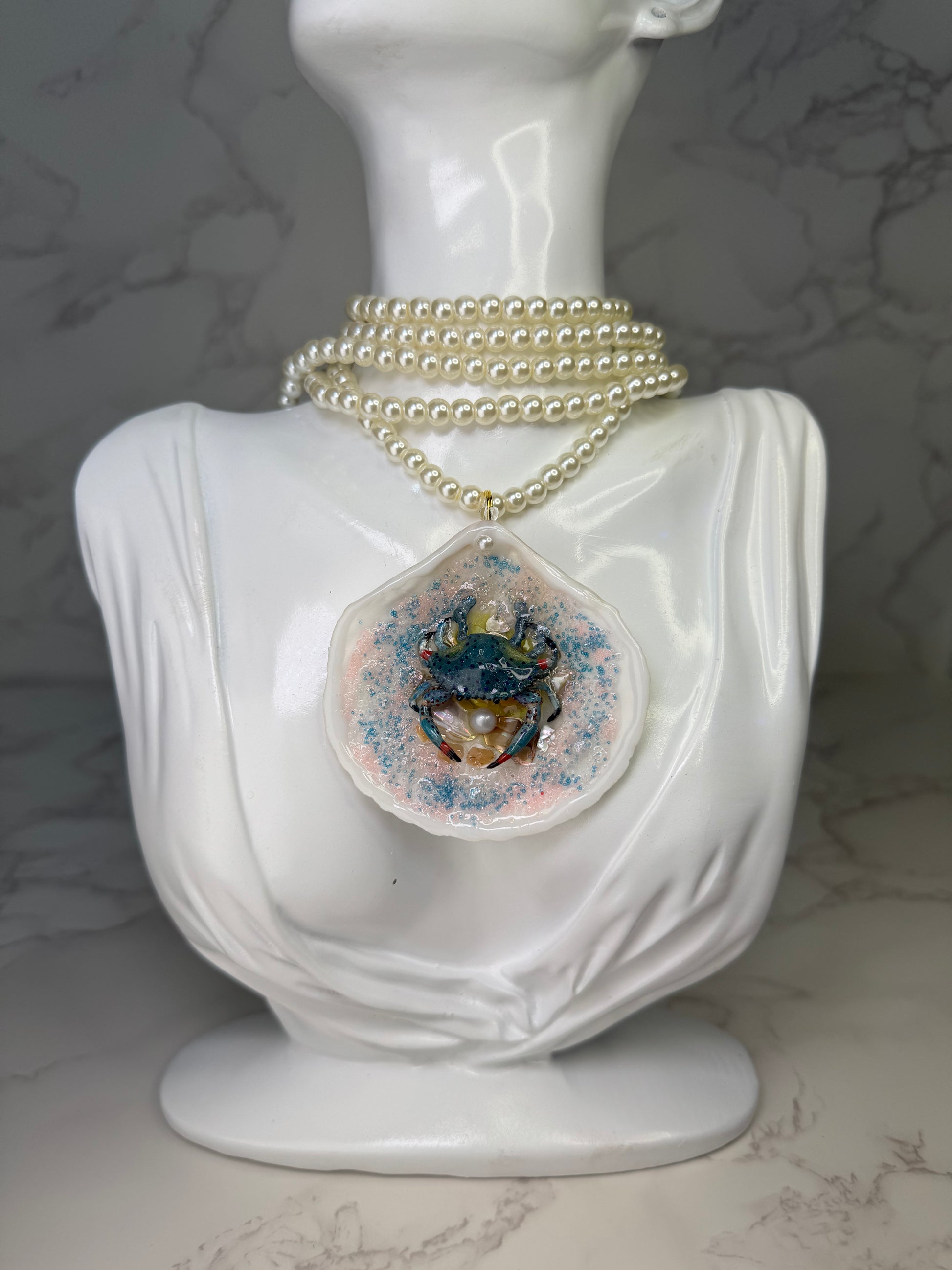 The Blue Jaiba Shell Necklace - Encapsulated in Real Shell with UV Resin