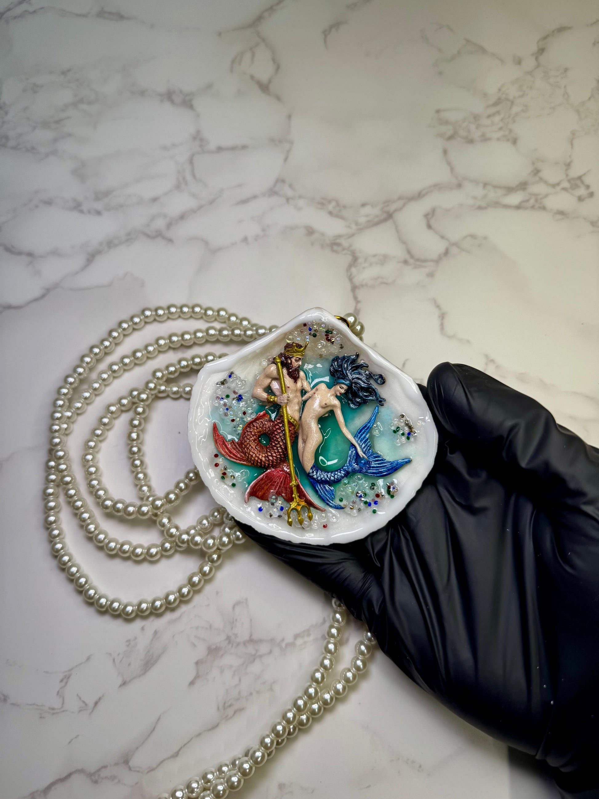 #MermaidJewelry #CrimsonStorm #AzureWhisper #OceanLegends #ResinArt #Handmade #DoubleSided #SeashellJewelry #WearableArt