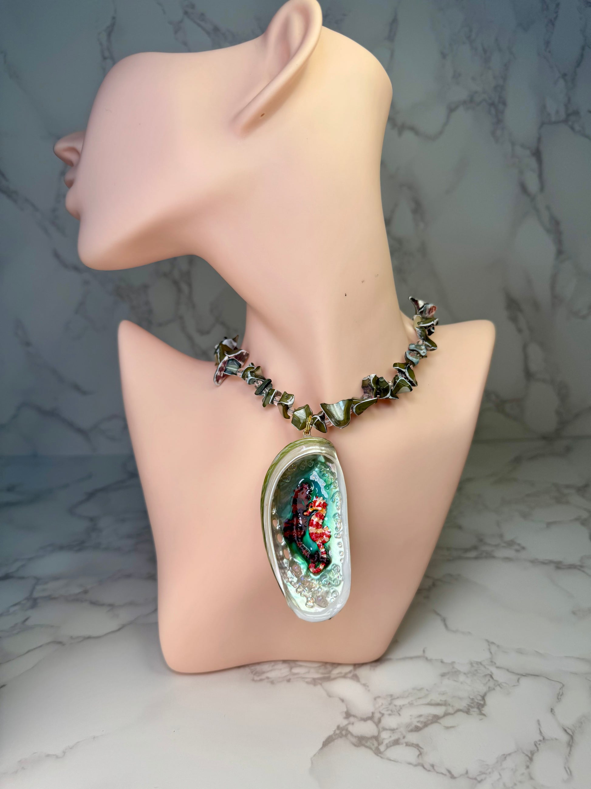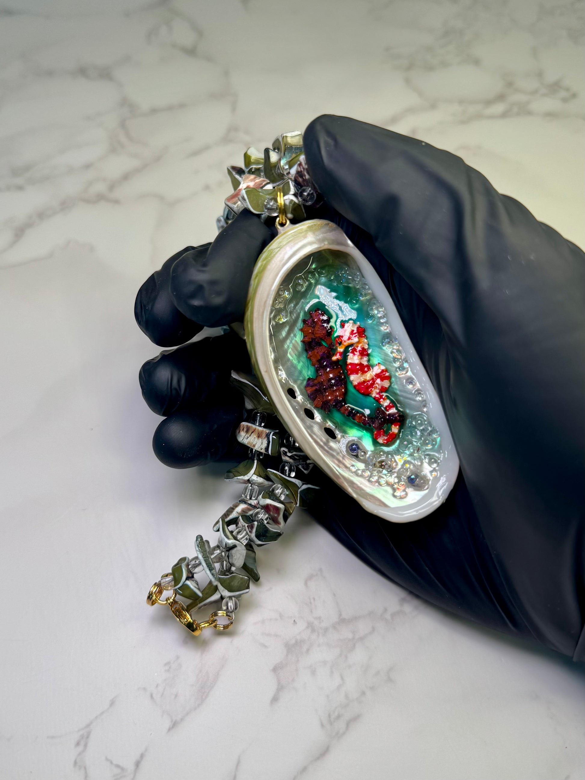 #OceanJewelry #EternalPair #SeahorseArt #ResinArt #Handmade #SeashellDesign #MarineInspired #WearableArt