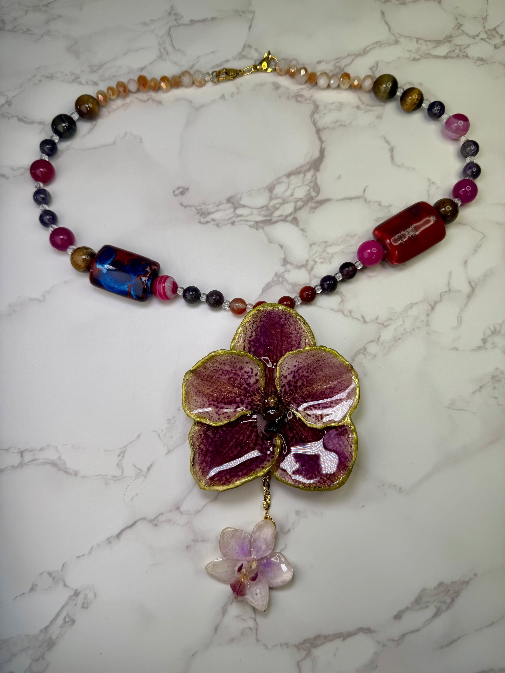 #FloralJewelry #RoyalBloom #OrchidArt #ResinArt #GoldDetail #Handmade #NatureInspired #WearableArt