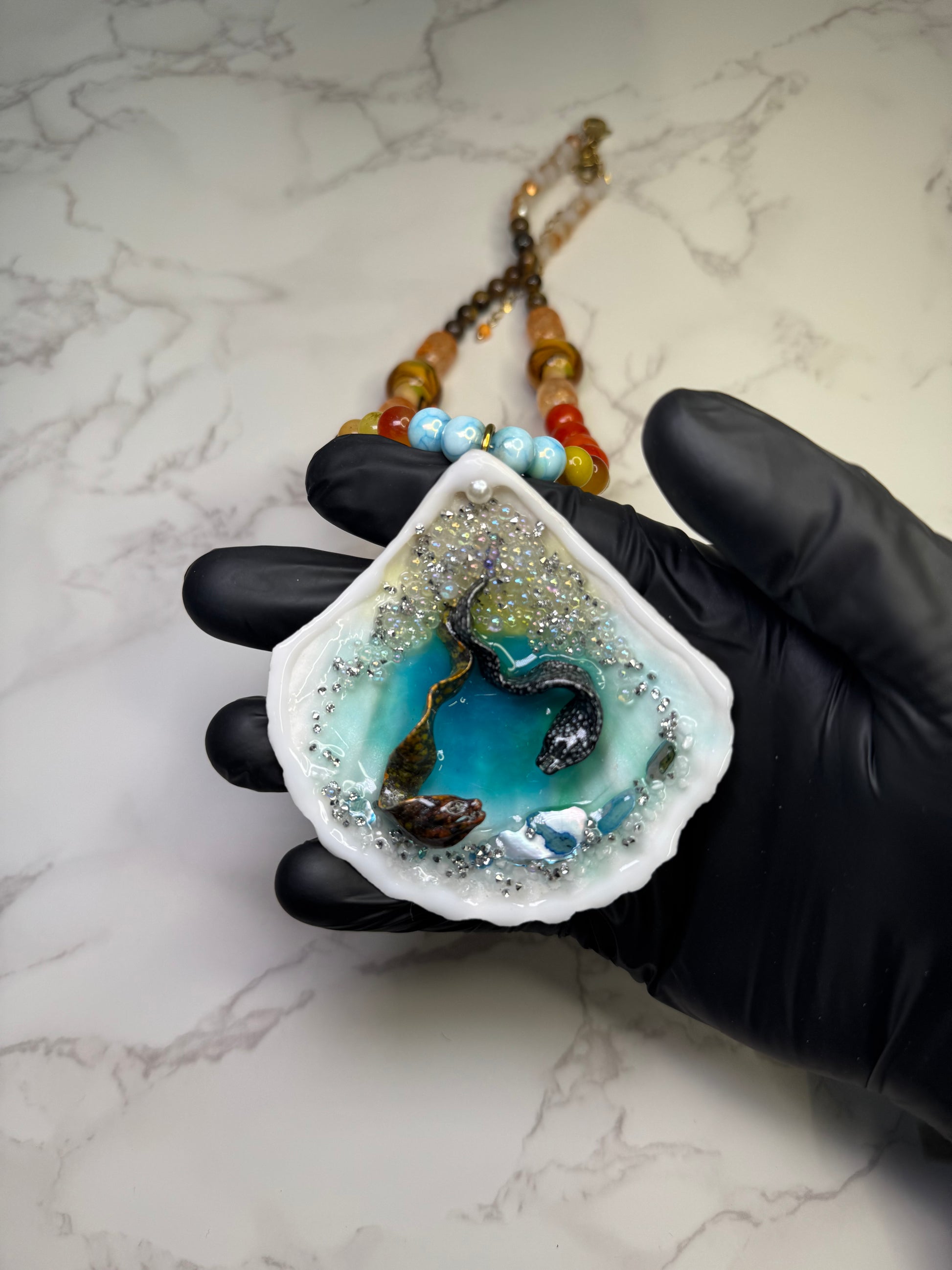 #OceanJewelry #TidesEmbrace #EelDance #SeashellDesign #ResinArt #Handmade #MarineInspired #WearableArt